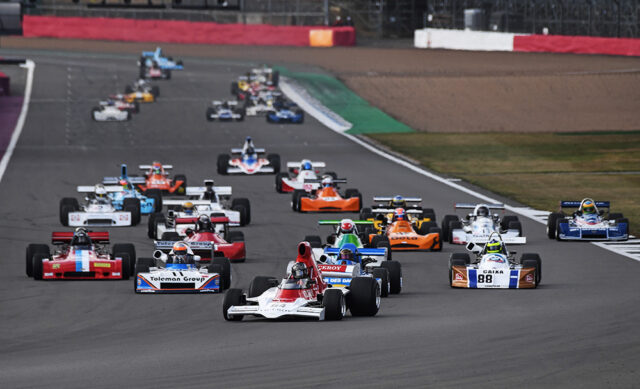 The afternoon programme continued with repeat encounters from Saturday’s F1 races. Despite starting from a reverse grid, Tom Bradshaw secured a second victory in his McLaren, as did Will Nuthall in his Cooper. Steve Brooks also won again in the second Masters Endurance Legends. Appropriately, the MRL Historic Touring Car Challenge race held in honour of four-time BTCC champion Andy Rouse was won by the Kaliber-liveried 1989 Ford Sierra Cosworth RS500, originally prepared by Andy Rouse Engineering and driven by Julian Thomas. The final race of the day was won by the 1970 Lola T70 shared by Alex Brundle and Gary Pearson.