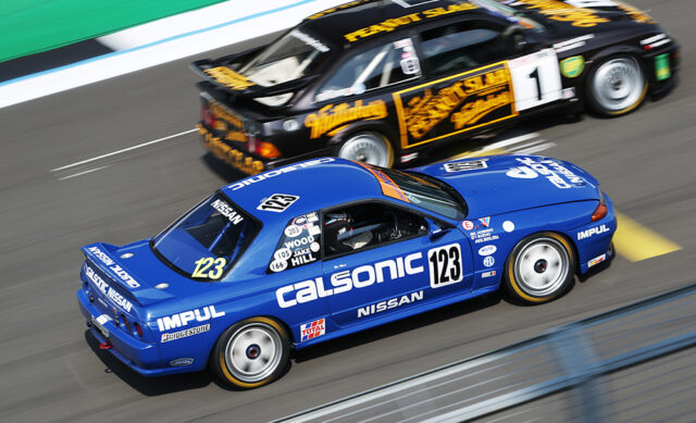 Max Chilton led the Masters Endurance Legends contest in a 2008 Zytek 04S until Steve Brooks passed him in a 2011 Peugeot 90X, and the Transatlantic Touring Car Trophy ended with less than a second separating three Ford Mustangs. Matt Johnson, Sam Tordoff and Jake Hill crossed the line together after 45 minutes of close racing.